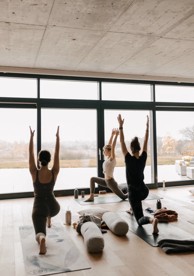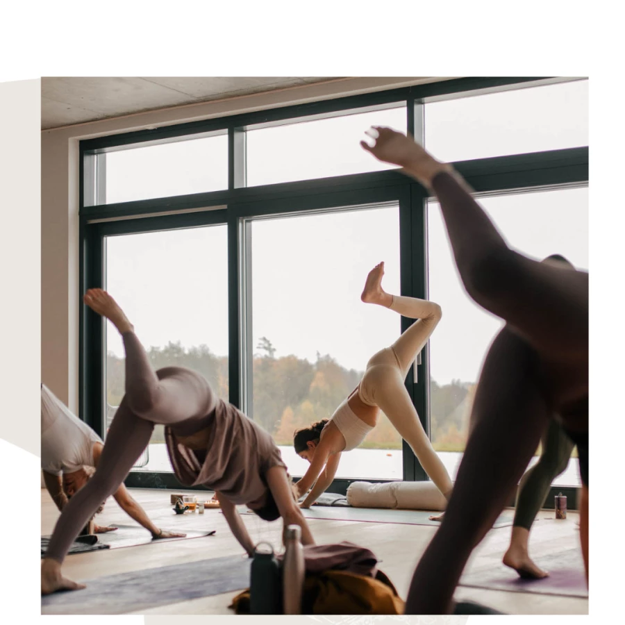 Wyposażenie sal: maty do jogi, bolstery, kostki, kocyki do medytacji, koce jogowe