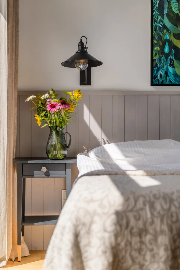 Dom jest nowy, urządzony z dbałością o detale i komfort naszych gości. Oferujemy 10 pokoi: w tym 5 pokoi dwuosobowych, 2 pokoje czteroosobowe i 3 pokoje trzyosobowe, łącznie dla 27 osób.